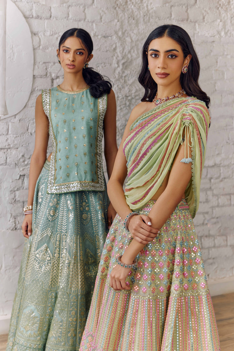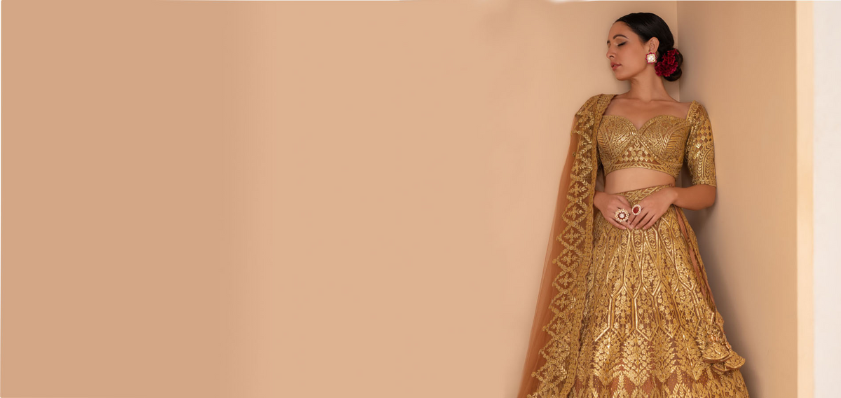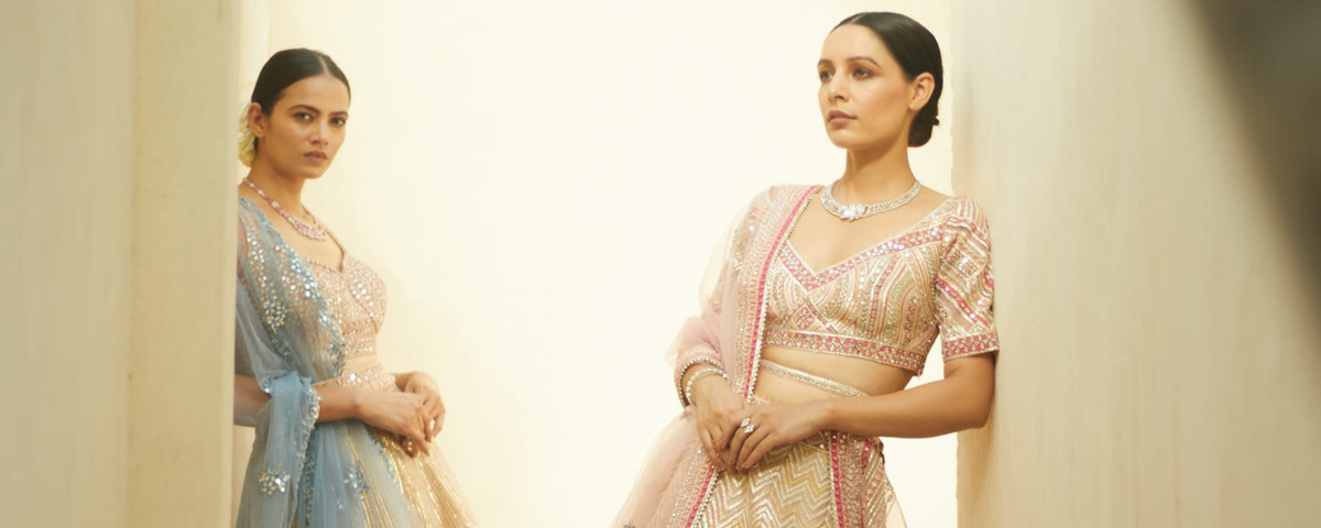 Go to the shopStudio Iris marries Indian crafstmenship with modern silhouettes for lehengas that are one of a kind. Our bespoke services customise blouses, colours and patterns to suit every bride. We ship worldwide, and provide a seamless shopping experience virtually.