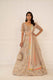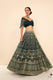 Brown organza lehenga with gold foil and zari work paired with a fully embelished blouse along with a net dupatta with scallop detailing